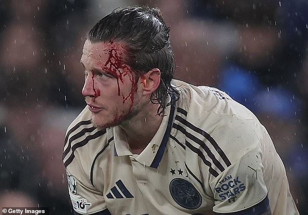 The Ajax player had a full-throated first-half as he bled, scored, and argued before being taken off at half-time